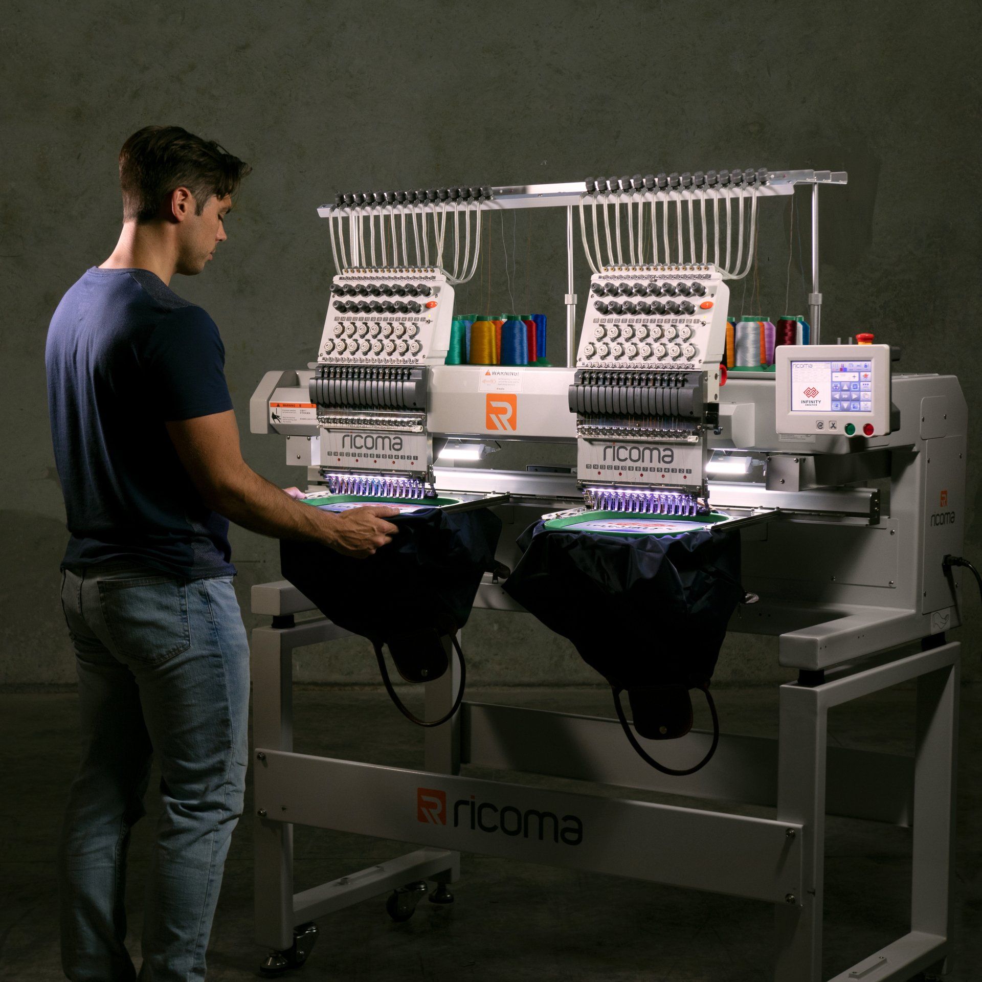 Il modello a due teste ad alto volume Ricoma MT-1502 ha una struttura "Open Area" che semplifica il ricamo su oggetti più grandi come borse e altri tessuti.