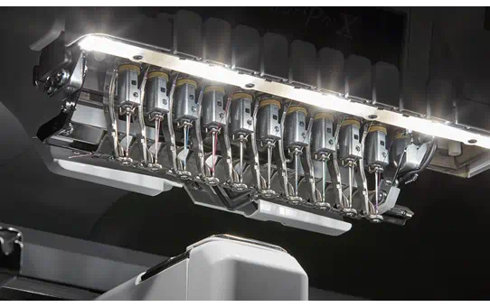 PR1055X è un concentrato creativo di potenza ma anche un incredibile cavallo da battaglia. Il tempo è denaro e queste funzioni permettono di lavorare alla grande con velocità a 10 aghi, infilatura automatica e ottimizzazione della sequenza colori.